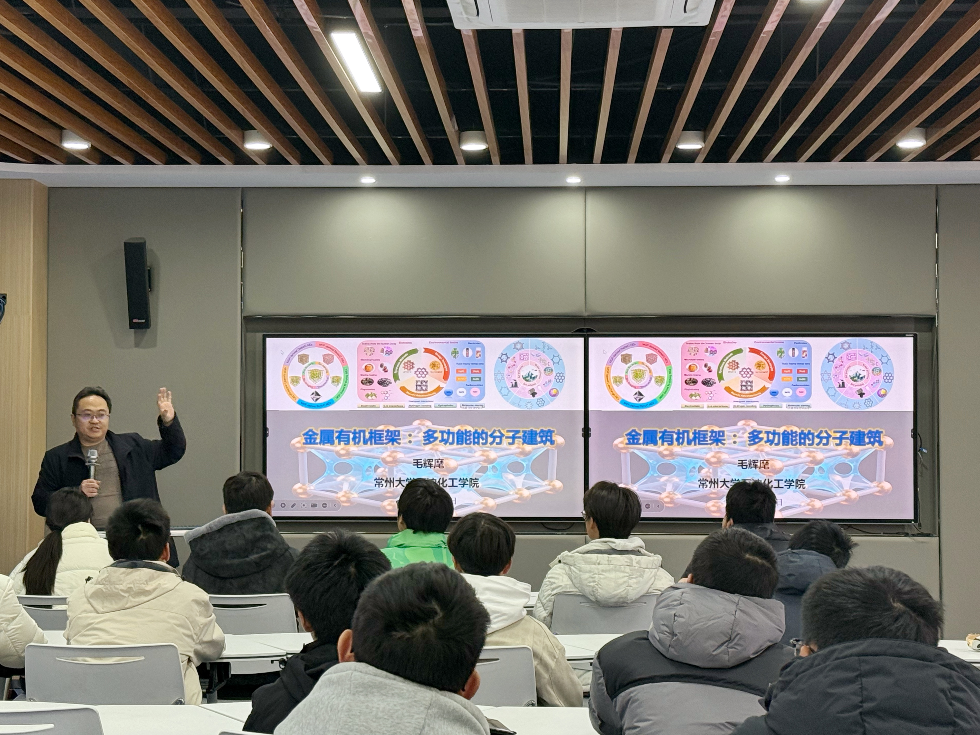 为拓展学生的专业视野,激发对多功能分子材料的研究兴趣,12月5日,黑料网 成功举办题为“金属有机框架:多功能的分子建筑”的学术讲座。本次讲座特邀石油化工黑料网 副教授毛辉麾担任主讲人,带领同学们深入领略这一新兴材料的独特魅力。